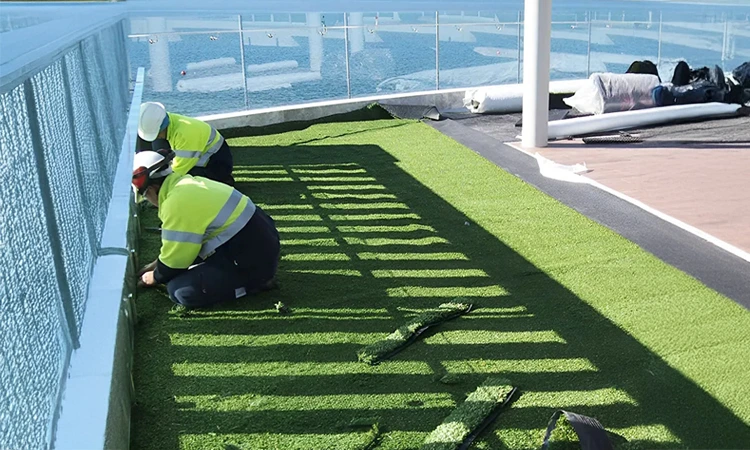 Elevate balconies and rooftops with lightweight, low‑maintenance artificial grass that looks natural and drains properly. Our balcony systems combine Water‑Cell for vertical drainage and geo‑fabric to prevent synthetic grass infill from blocking outlets, helping surfaces dry faster and stay cleaner. Choose between silica sand or PetFill infill; pair with Lawn Reborn enzymes for freshness in pet‑use areas. This balcony‑ready artificial turf delivers a soft, durable finish without soil, reduces mess tracked indoors, and avoids the flat, shiny look of cheap fake grass – perfect for compact outdoor spaces in Perth apartments and townhouses.