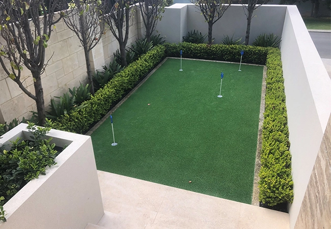 No mowing. No watering. Just brush and putt
