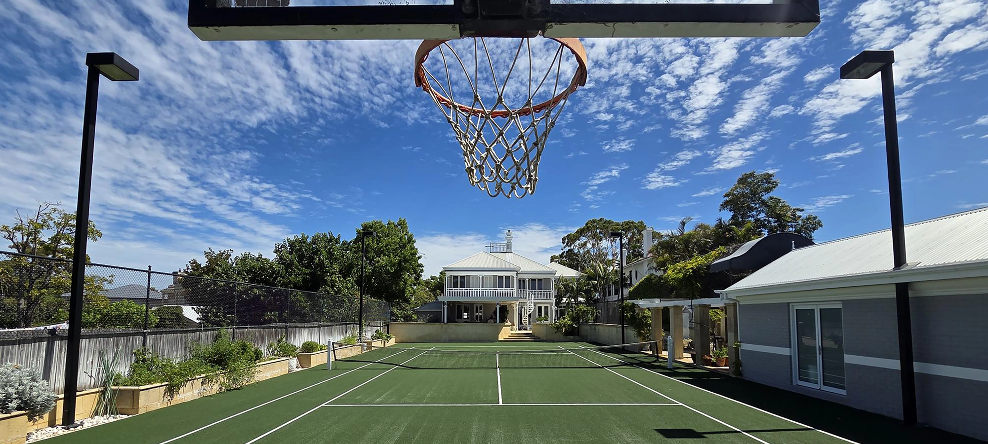 Create safe, durable home sports and play zones with artificial grass engineered for Perth families. Green Planet Grass designs and installs synthetic grass systems for tennis, footy, basketball, netball, cricket, soccer, 4‑square, golf, and multipurpose courts – complete with line‑marking and colour options.